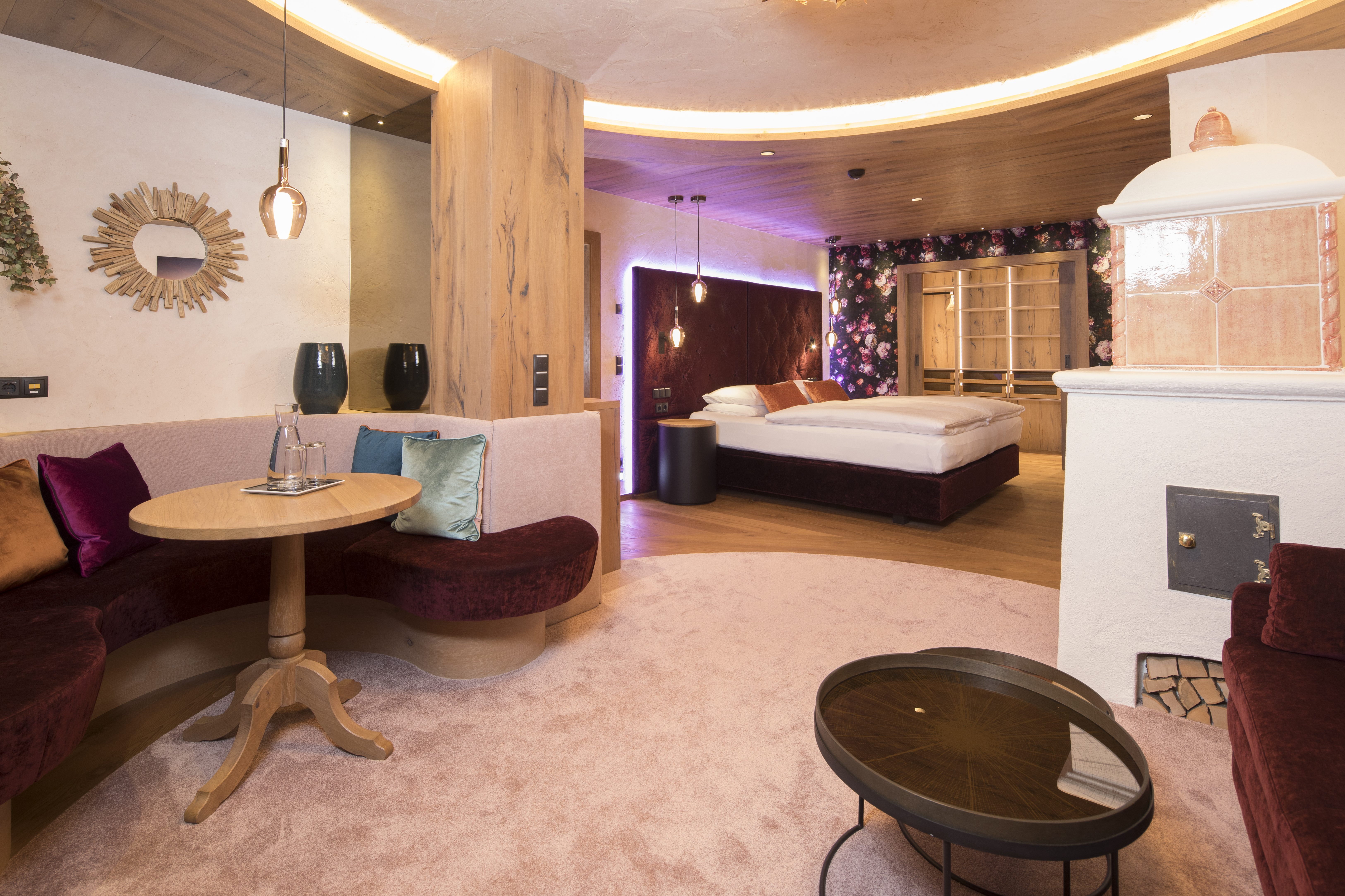 Stilsicher und wundervoll harmonisch. Elegant und veredelt mit liebevollen Details verspricht die Rosensuite Romantik de luxe für anspruchsvolle Genießer. Im großzügigen Erker sorgen ein kuscheliger Kachelofen und der einzigartige Talblick für ein ganz besonderes STOCK feeling.