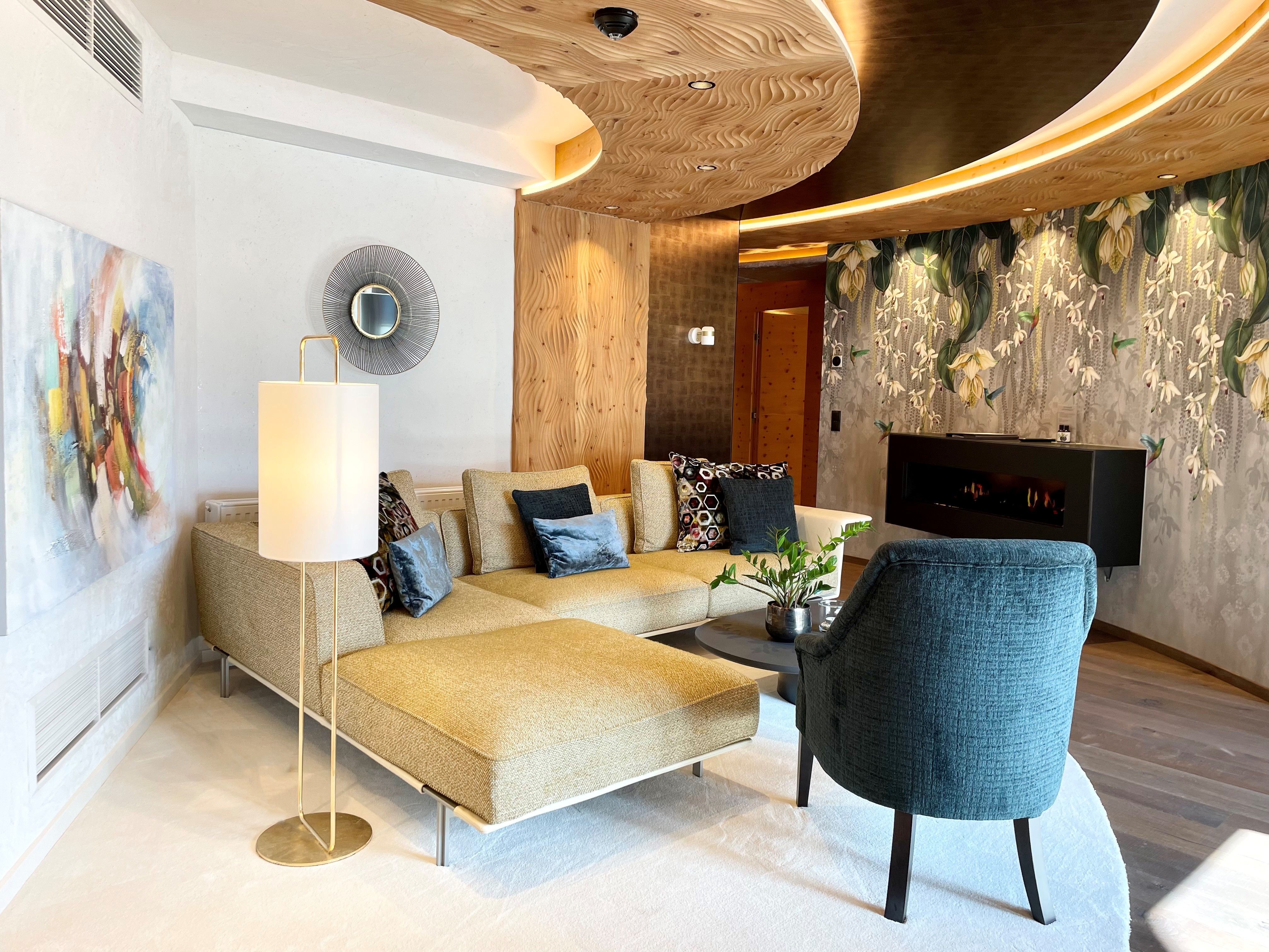 Wo Großzügigkeit groß geschrieben wird - unsere Wellnessuite Deluxe überzeugt nicht nur mit ihren 121 m², sondern auch mit einem gemütlichen Kachelofen, einer privaten Sauna und zwei getrennten Schlafzimmern. Vom Wohnraum gelangt man auf die Terrasse mit einem traumhaften Blick auf Mayrhofen und den Kolmspitz.